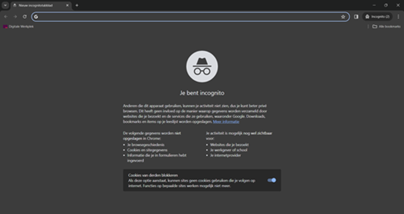 3. Er wordt een nieuw venster geopend. Je ziet dat dit de privémodus is door het 'detective' icoontje in beeld.