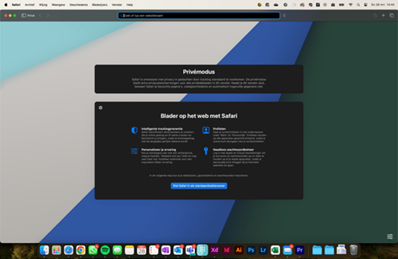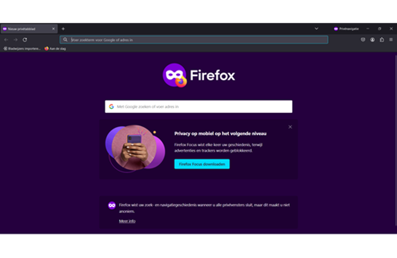 3. Er wordt een nieuw venster geopend. Je ziet dat dit de privémodus is door het paarse maskertje in beeld.