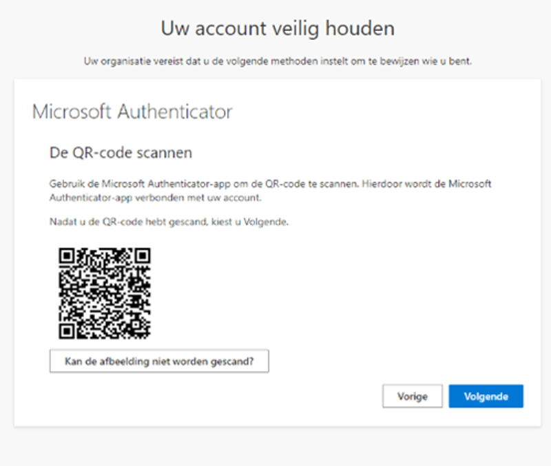 2.4 Scan met de Authenticator-app de QR-code en kies ‘Volgende’
