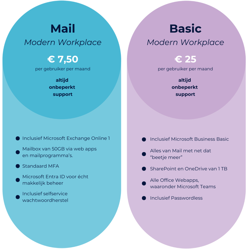 Onze digitale werkplek is altijd inclusief onbeperkt support van echte professionals.